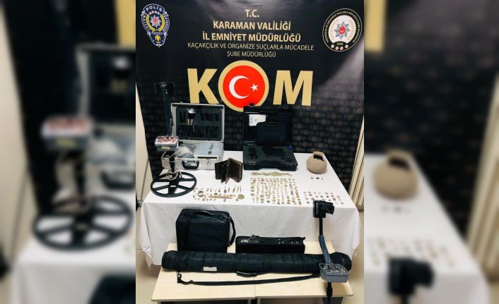 Edinilen bilgiye göre, Karaman Emniyet Müdürlüğü Kaçakçılık Ve Organize Suçlarla Mücadele Şube Müdürlüğü ekipleri, Cumhuriyet Başsavcılığının talimatıyla tarihi eser kaçakçılarına yönelik çalışma başlattı. Yapılan araştırmaların tamamlanmasının ardından çeşitli adreslere operasyon düzenlendi. İkamet, iş yeri ve araçlarda yapılan aramalarda, 277 adet sikke, 27 adet yüzük, 1 adet tarihi eser deri üzerine yazılmış kitap, 1 adet testi, 9 adet ok ucu, 28 adet muhtelif tarihi eser obje, 2 adet dedektör, 1 adet zemin ölçmede kullanılan cihaz ve dedektörlere ait muhtelif cihazlar ele geçirildi. Olayla ilgili 7 kişi ise gözaltına alındı. Şüpheliler ifadeleri alınmak üzere KOM Şube Müdürlüğüne götürüldü.