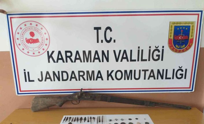 Karaman’ın Ermenek ilçesinde jandarmanın düzenlediği operasyonda tarihi eser niteliği olduğu düşünülen 52 obje ele geçirildi.