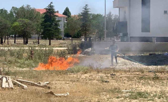 Karaman’da inşaat alanındaki atıkların tutuşması sonucu çıkan yangın büyümeden söndürüldü.