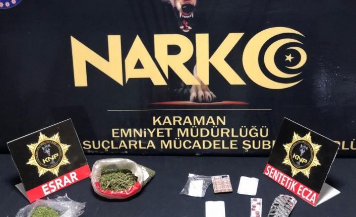 Edinilen bilgiye göre, Karaman İl Emniyet Müdürlüğü Narkotik Suçlarla Mücadele Şubesi ekipleri, kentte uyuşturucu ticareti yaptıkları ileri sürülen H.G., M.Ö.S., F.Y. ve H.G. isimli kişileri yakalayarak gözaltına aldı. Şüphelilerin gösterdikleri yerde yapılan aramalarda 105 gram esrar ve reçeteye tabi 49 hap ele geçirildi. Emniyetteki işlemlerin ardından adliyeye sevk edilen şüpheliler, çıkarıldıkları mahkemece tutuklanarak Karaman M Tipi Kapalı Cezaevine kondu.