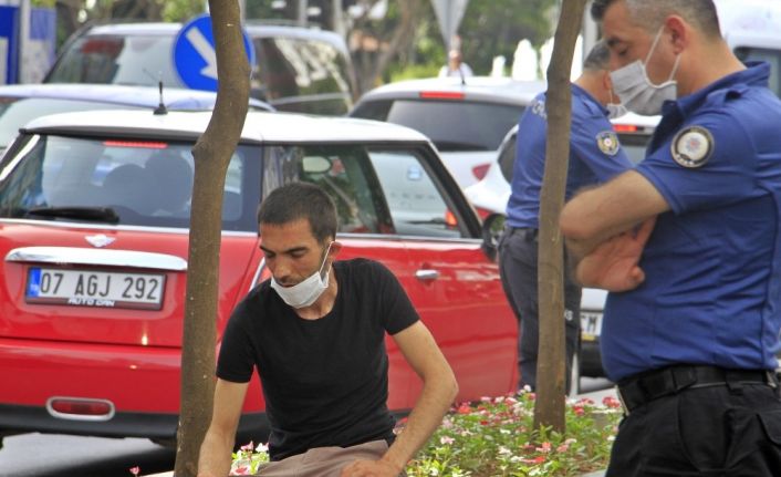 Polisi alarma geçiren olay, dün saat 16.30 sıralarında Antalya’nın en işlek caddelerinden Güllük Caddesi’nde meydana geldi. Edinilen bilgiye göre, son günlerde Covid-19 vakalarındaki artış nedeniyle 3 gün önce kısmi karantinaya alınan Yeşildere Mahallesi’nde yaşayan Veysel Aytaç (31), bugün karantinadan kaçıp Güllük Caddesi’ndeki babası Abdülkadir Aytaç’ın yanına geldi. Oğlunun halsiz bir şekilde insanların arasında yürüdüğünü gören baba, oğluna kaldırım üzerindeki banka oturup oradan ayrılmamasını söyledikten sonra polisi arayarak durumu bildirdi. İhbarın ardından olay yerine gelen polis ekipleri, çevrede güvenlik önlemi alıp bölgeye sağlık ekiplerini talep etti. Maske takmadığı gözlenen gence polis takması için önce maske verdi.