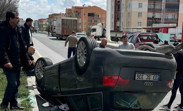 Karapınar’da kontrolden çıkan otomobil takla attı: 2 yaralı