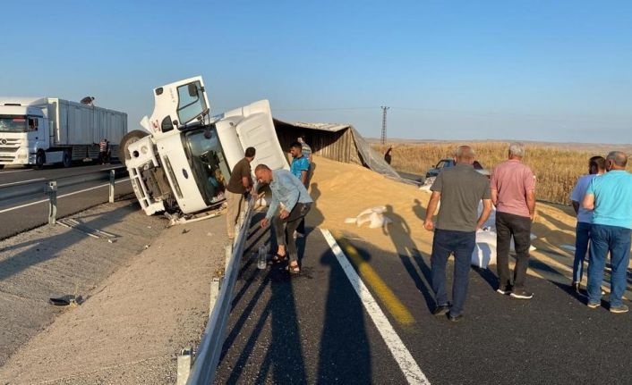 Kaza sabah saatlerinde Siverek-Diyarbakır karayolunun 45’inci kilometresinde meydana geldi. Alınan bilgilere göre arpa yüklü tır, sürücüsünün direksiyon hâkimiyetini kaybetmesi sonucu refüje devrildi. Kazada araç sürücüsü ile yanında bulunan bir kişi yaralanırken, tır kasasında bulunan tonlarca arpa yola savruldu.