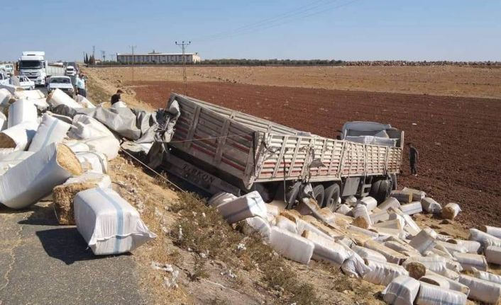 Şanlıurfa’nın Suruç ilçesinde devrilen tırın sürücüsü yaralanırken içerisindeki samanlar savrularak yolu harman yerine çevirdi.