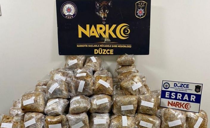 Düzce Cumhuriyet Başsavcısı Yasin Emre, yaptığı açıklamada “Cumhuriyet Başsavcılığımızın talimatlarıyla Emniyet Müdürlüğü Narkotik Suçlarla Mücadele Şube Müdürlüğü ekipleri saat 17.00 sıralarında Anadolu Otoyolunda durumundan şüphelenilen kargo aracı durdurdu. Kargo aracının dorsesinde yapılan aramada toplam 110 parça toplam daralı 65 kilo 598 gram ele geçirilmiştir. Araç sürücüleri hakkında uyuşturucu madde ticareti yapmak suçundan adli işlem başlatılmış şüpheli şahıslar gözaltına alınmıştır” dedi.
