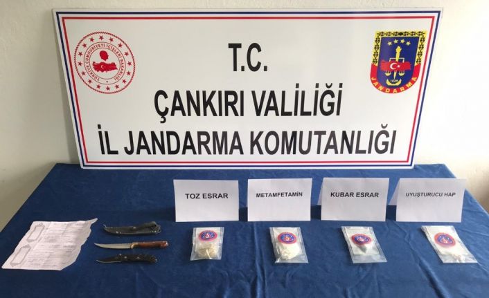 Çankırı İl Jandarma Komutanlığı Kaçakçılık ve Organize Suçlarla Mücadele Şube Müdürlüğü ekiplerince, İstanbul’dan Çankırı’ya bir kargo firması aracılığıyla uyuşturucu madde gönderildiği ihbarını aldı. İhbarı değerlendiren ekipler, başlatılan çalışma kapsamında kargo firması etrafında tedbir aldı. Operasyon kapsamında şüpheli B.U., H.B. ve M.K., kargo paketini aldığı esnada suçüstü yakalandı. Açılan kargo paketinde yapılan kontrollerde 20 gram toz esrar, 5 gram metamfetamin, 5 gram kubar esrar maddesi ele geçirildi. Şahısların üzeri ve aracında yapılan kontrolde ise 2 adet bıçak ele geçirildi.