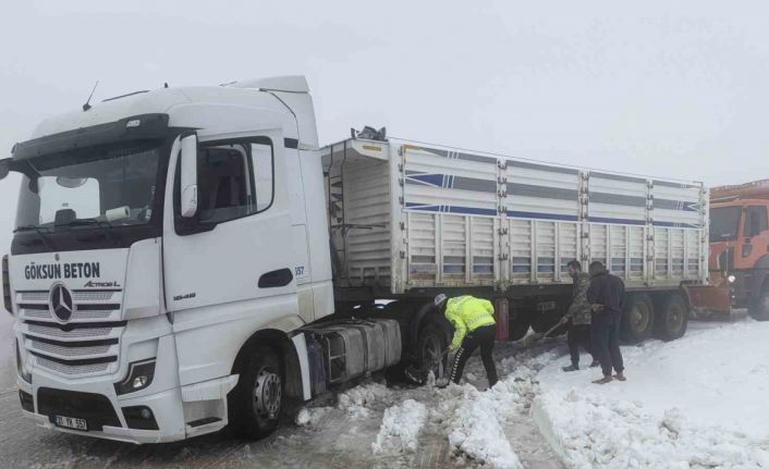 Karla kaplı yollarda mahsur kalan vatandaşların yardımına polis koştu