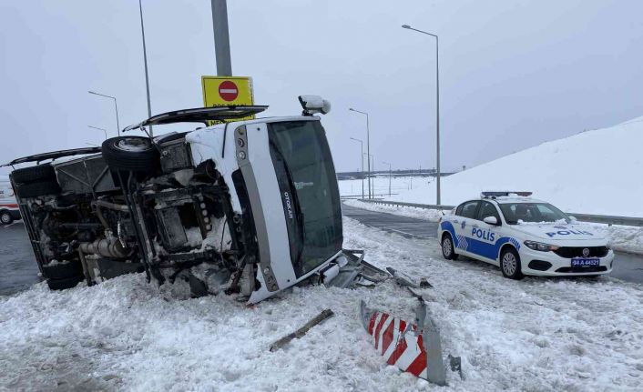 Karlı yolda servis minibüsü yan yattı: 3 yaralı