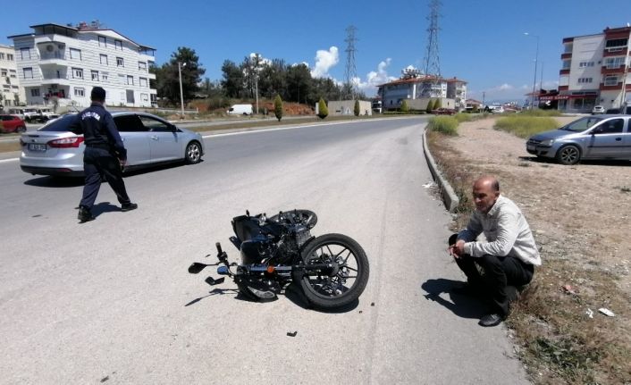 Manavgat ilçesinde karşı şeride geçen otomobilin çarptığı motosikletin sürücüsü ile motosiklette yolcu olarak bulunan 1 kişi yaralandı.