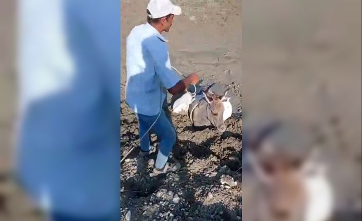 Kars’ın Akyaka ilçesine bağlı Küçük Aküzüm köyünde Teoman Gelekçi’ye ait eşek, hayvan göletinde suç içtikten sonra çıkmak isterken çamura saplandı. Saplandığı çamurdan çıkamayan eşeğin imdadına köylüler yetişti.