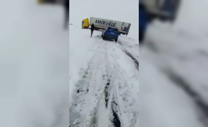 Kars-Arpaçay-Çıldır kara yolunda kayan tır yolu ulaşıma kapattı. Kar yağışının da etkili olduğu kara yolunda ulaşım durdu.