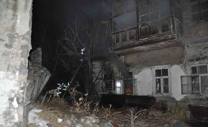 Kars’ta tarihi ahşap bina çıkan yangında kullanılamaz hale geldi.
