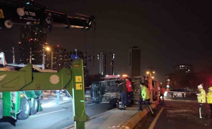 İstanbul Kartal’da hasta taşıyan ambulans ile bir cipin kavşakta çarpışması sonucu meydana gelen kazada ambulanstaki hasta ve 2 sağlık personeli yaralandı. Çarpışmanın şiddetiyle devrilen ambulans vinç yardımıyla kaldırılırken, bölgede trafik yoğunluğu oluştu.
