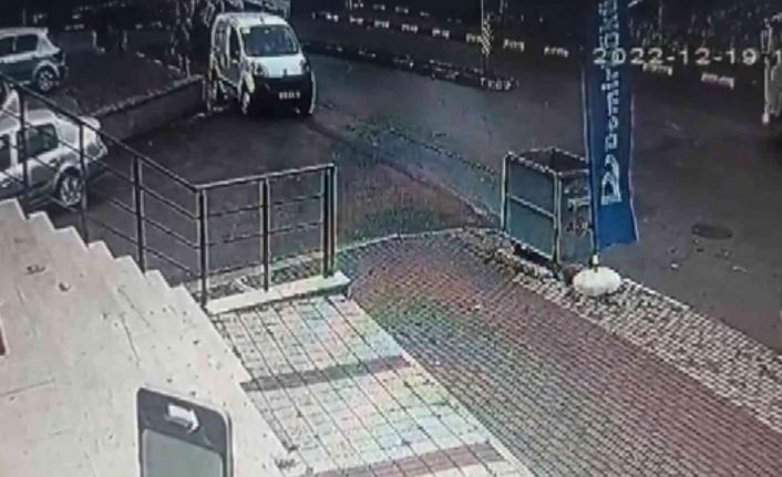 Yaşanan kaza anı bir iş yerine ait güvenlik kamerasına yansıdı.