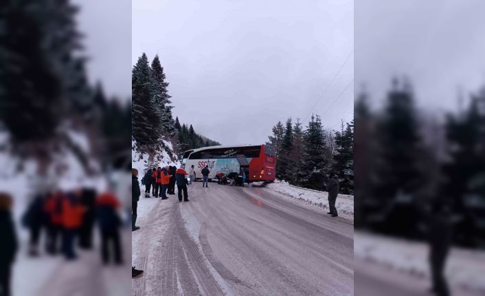 Bolu’da Kartalkaya Kayak Merkezi yolunda buzlanma nedeniyle kontrolden çıkan bir yolcu otobüsü, yolu ulaşıma kapattı. Onlarca araç yolda kalırken, otobüse zincir takılmasının ardından yolun trafiğe açılması bekleniyor.