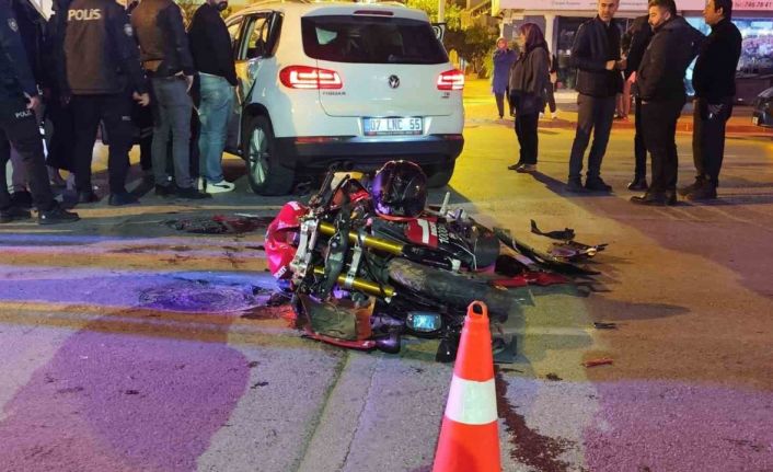 Kaza; Manavgat ilçesi Demokrasi Bulvarı’nda meydana geldi. Edinilen bilgiye göre, çevreyolu istikametine seyir halindeki Kadir Akbulut’un kullandığı 07 CEF 424 plakalı motosiklet, kavşak sisteminde Mithatpaşa Caddesine gitmekte olan Mehmet T. I.’nın kullandığı 07 LNC 55 plakalı otomobil ile çarpıştı. Kazayı gören vatandaşların 112 Acil Çağrı Merkezi’ne ihbarı ile olay yerine çok sayıda sağlık ve polis ekibi sevk edildi. Feci kazada motosiklet sürücüsü Kadir Akbulut, motosiklette yolcu olarak bulunan Melike D., ile otomobil sürücüsü Mehmet T. I. ve otomobilde yolcu olarak bulunan İsmehan I. yaralandı.