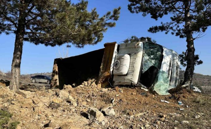Kastamonu’da buzlu yolda devrilen hafriyat kamyonunun sürücüsü yaralandı.