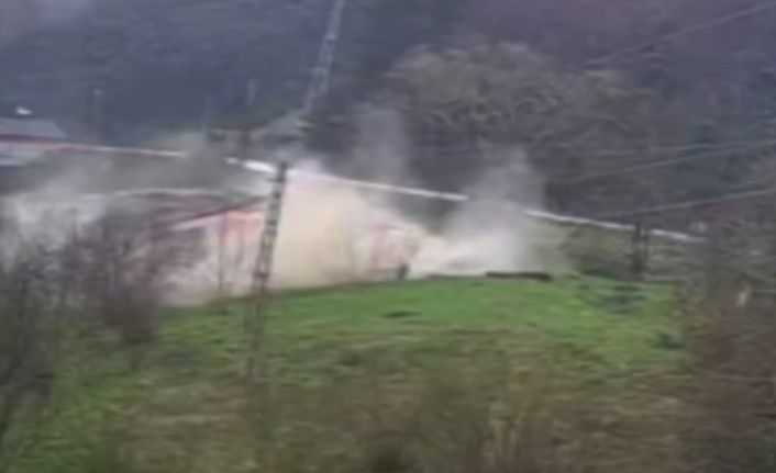 Kastamonu’nun Cide ilçesinde heyelan riski sebebiyle tahliye edilen iki katlı evin çökme anı güvenlik kamerasına yansıdı.