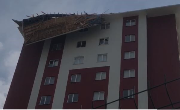 Kastamonu’de etkili olan yağış ve şiddetli rüzgar sebebiyle apartmanın uçan çatısı, park halindeki araçlara zarar verdi.