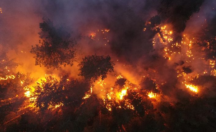 Öte yandan geceyi aydınlatan yangın havadan görüntülendi.