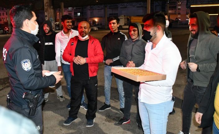 Aksaray’da korona virüs kapsamında geniş güvenlik önlemi alarak etkin bir mücadele sergileyen polise kavga ihbarında bulunan gençler tatlı sürprizi yaptı.