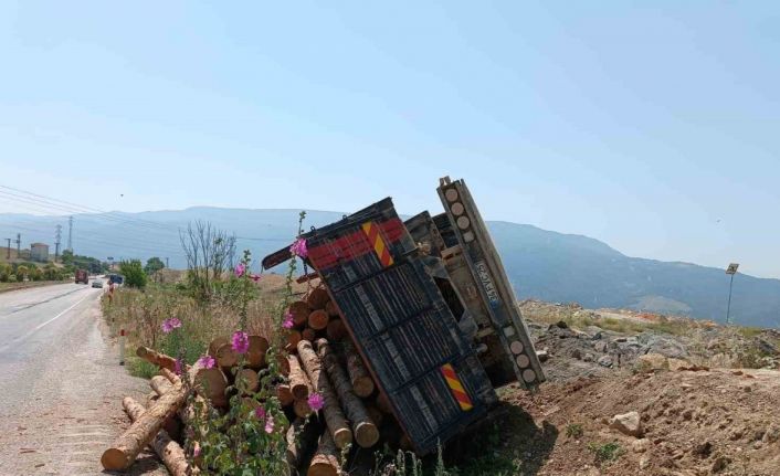 Karabük’ün Safranbolu ilçesinde kavşaktan dönemeyen tomruk yüklü kamyonun devrilmesi sonucu 2 kişi yaralandı.