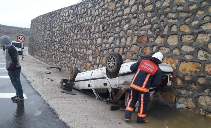 Mardin-Diyarbakır karayolunda yağış nedeni ile kayganlaşan yolda kontrolden çıkan araç istinat duvarına çaptı. Kazada 3 kişi yaralandı.