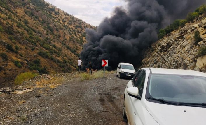 Şırnak-Hakkari karayolunda Şırnak istikametine seyir halindeki tır sabaha karşı yağan yağmurdan dolayı kayganlaşan yolda sürücüsünün direksiyon hakimiyetini kaybetmesi sonucu şarampole yuvarlanarak alev aldı. Sürücünün araçtan atlayarak yaralı kurtulduğu kazada tır yanarak küle döndü.