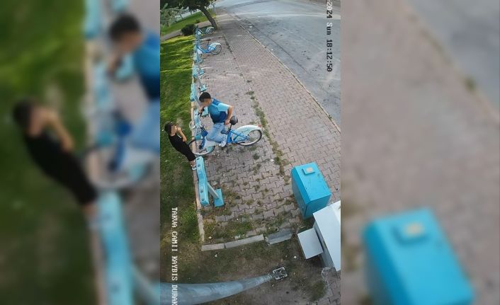 Öte yandan güvenlik kameraları tarafından saniye saniye kaydedilen olayda, şüphelilerin kayısı yiyerek bisikletleri çaldığı görülüyor.