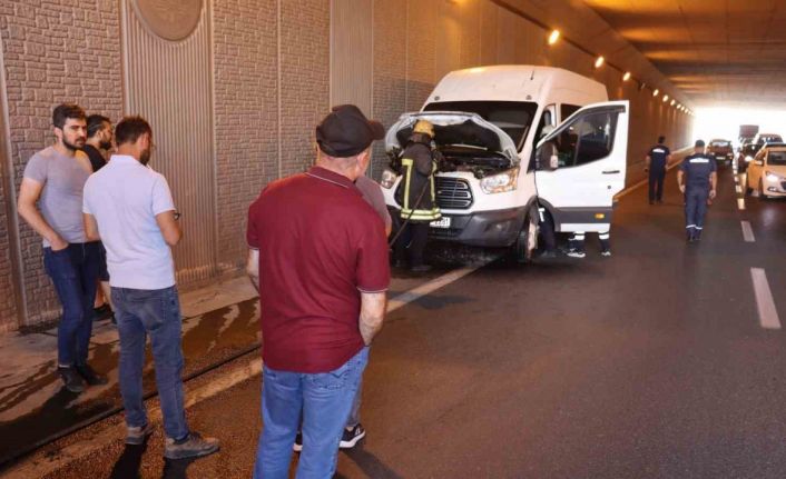 Kayseri’nin Kocasinan ilçesinde işçi taşıyan servisin motor kısmı seyir halindeyken alev aldı. İşçiler kendilerini dışarı atarken, çıkan yangın büyümeden söndürüldü.