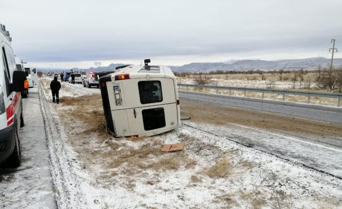 Kayseri’nin Yeşilhisar ilçesinde kayganlaşan yolda kontrolden çıkan işçi servisinin devrilmesi sonucu meydana gelen kazada 10 kişi yaralandı.