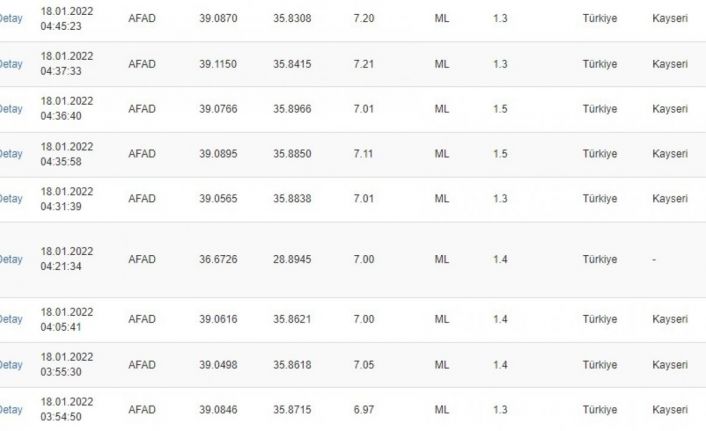 Kayseri’deki 4.9’luk depremin ardından 21 artçı sarsıntı