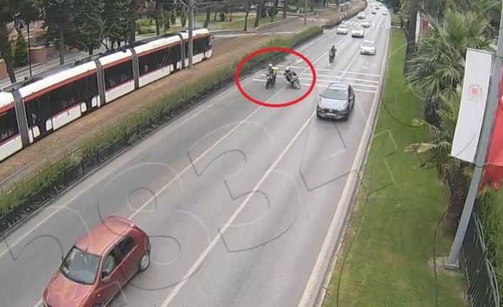Kaza anı ise kent güvenlik yönetim sistemi (KGYS) kameralarına yansıdı. Görüntülerde sağ şeritte ilerleyen iki motosikletli birbirine yakınlaşıp sohbet ettikleri sırada kontrolünü kaybeden bir motosikletin yere savrulması görülüyor.