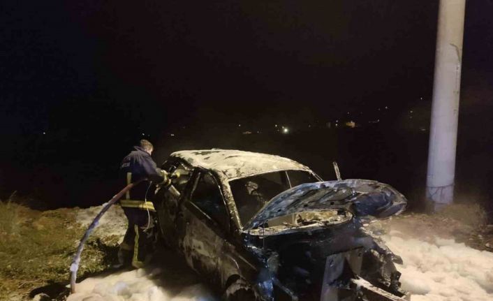 Antalya’nın Gazipaşa ilçesinde bir araç direksiyon hakimiyetini kaybederek reklam tabelasının direğine çarptı. Çarpmanın etkisi ile otomobil alev aldı.