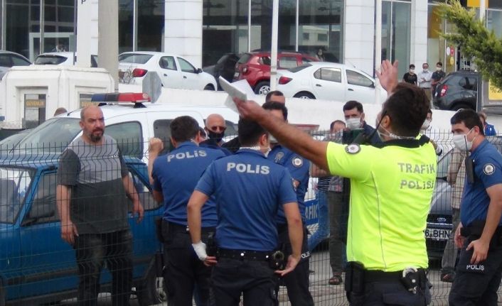 Gelen ekipler otomobil sürücüsü M.T.’ye müdahale etmek isterken, şahıs bir anda olay yerindeki polis ekiplerine saldırmaya başladı. Bunun üzerine olay yerine çok sayıda takviye ekibi gönderildi. Alkollü olduğu iddia edilen şahıs gelen ekipler tarafından etkisiz hale getirildi. M.T., önce İnegöl Devlet Hastanesine ardından da alınan rapor sonrası karakola götürüldü.