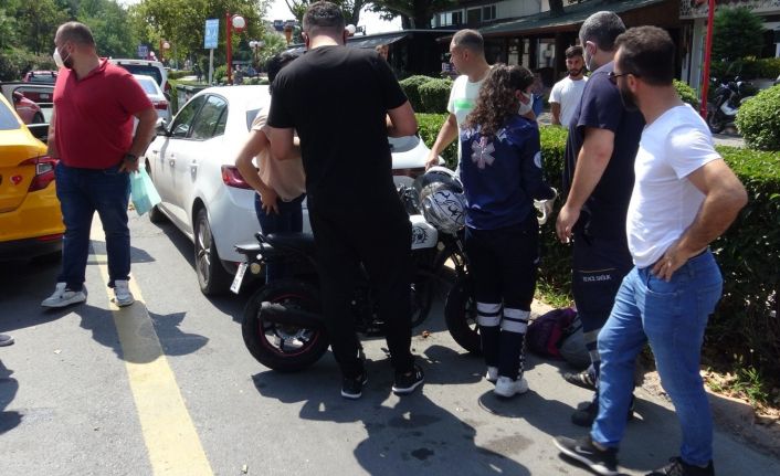 Zonguldak’ın Ereğli ilçesinde meydana gelen trafik kazasında 1 kişi yaralandı. Motosiklette bulunan kişi olay yerinden kaçmak isterken, taksi şoförüyle kavga ettiği anlar kameralara yansıdı.