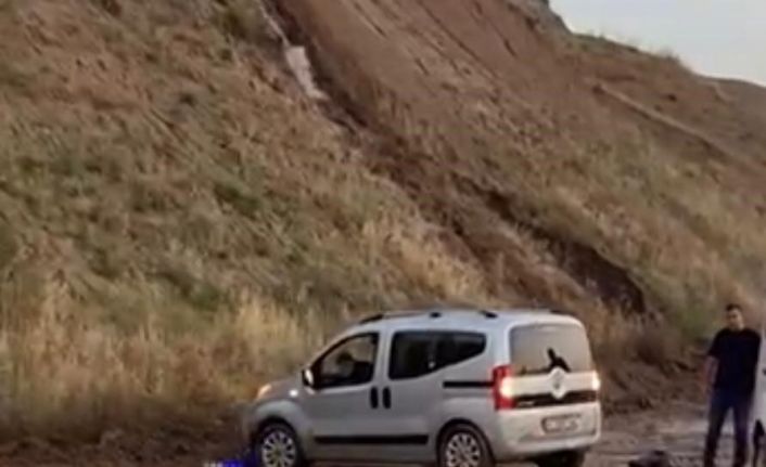 Çamura saplanan hafif ticari araç ise halatlar yardımıyla arama-kurtarma aracına bağlanarak çıkarıldı.