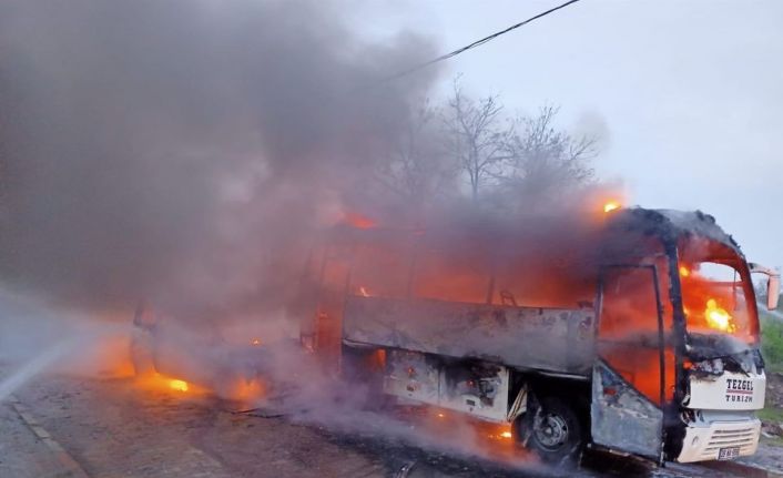 Kırklareli’de duran midibüse hafifi ticari aracın çarpması sonucu çıkan yangında 2 araç kullanılamaz hale geldi.