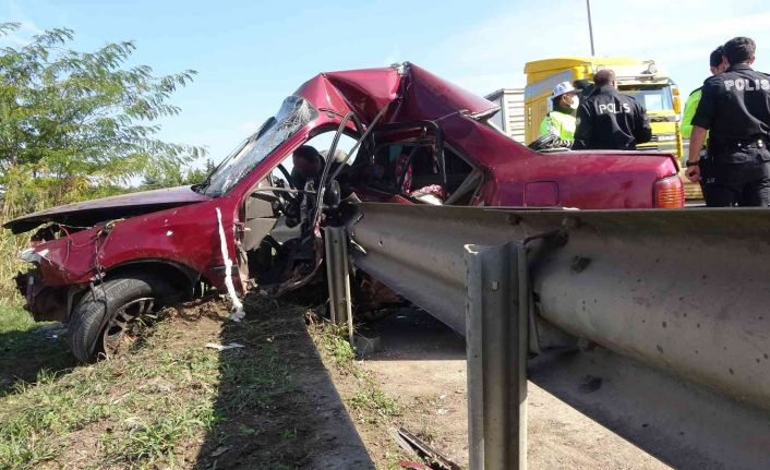 Yaralı sürücü itfaiye ekiplerince araç içinden çıkarıldı