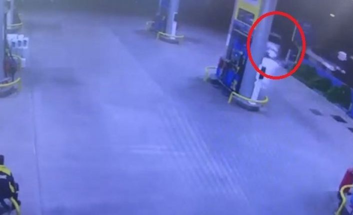 Olay merkez Yıldırım ilçesi Arabayatağı mahallesi Ankara Yolu caddesindeki bir benzinlikte meydana geldi. İddiaya göre aynı şeritte seyreden otomobilin manevrasıyla yoldan çıkan diğer sürücü otomobile çarpmamak için direksiyonu benzinliğe çevirince kaza kaçınılmaz oldu. İstasyonun girişinde bulunan tabelaya çarparak duran otomobil sürücüsü kazayı yara almadan atlatırken facia teğet geçti. Kaza esnasında istasyonda görevli pompacılar şaşkınlık yaşadı. Kaza anı ise istasyonun güvenlik kamerasına saniye saniye yansıdı.