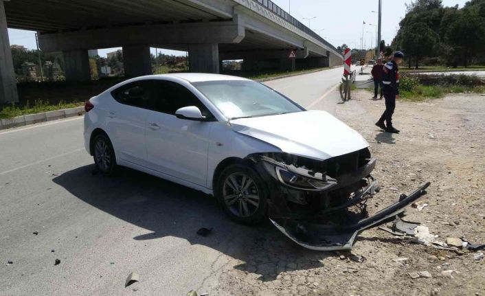 Kaza yaptığı otomobilden kendini dışarı zor attı