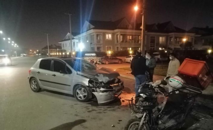 Sakarya’nın Serdivan ilçesinde sipariş götüren kurye motoru ile otomobil çarpıştı. Meydana gelen kaza sonrasında ağır yaralanan motor sürücüsü, korona virüs nedeni ile yoğun bakımda yer bulunamayınca Bolu Devlet Hastanesine sevk edildi.