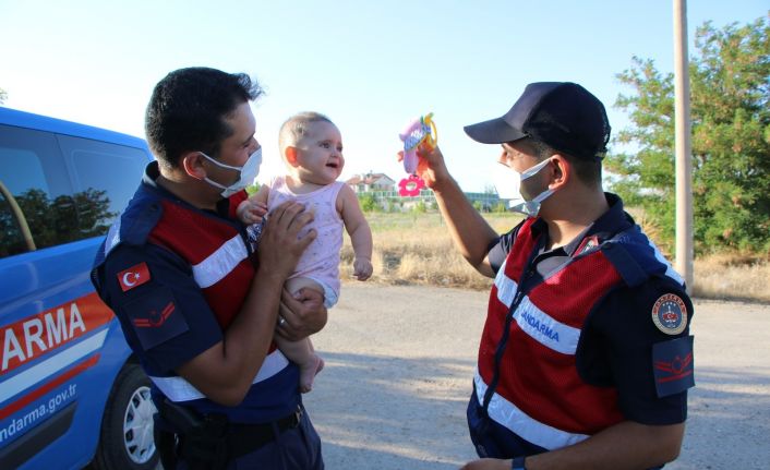 Elazığ’da iki aracın karıştığı kazada 9 aylık minik Zeynep’in annesi yaralanınca, jandarma ekipleri bebekle ilgilenip oyun oynadı.