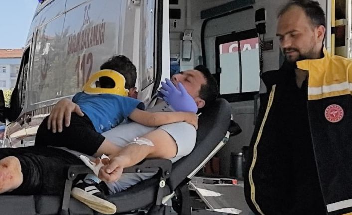 Bursa’nın İnegöl ilçesinde otomobilin çarptığı motosikletteki 2’si çocuk 3 kişi yaralandı. Sağlık ekipleri, müdahalenin ardından yaralı çocuğa muayene eldiveniyle balon yapıp verdi.