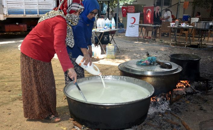 Muğla’nın Köyceğiz ilçesinde günlerdir devam eden yangınlarda görev alan yüzlerce işçi, gönüllü ve diğer personel için Köyceğiz Beyobası Mahallesinin kadınları yangın bölgesine ulaştırılmak üzere kazanları kurarak sıcak yemek pişirmeye başladı. Türk Kızılayı ile bölgedeki kadınlar organize oldular ve her gün farklı bir menü ile 3 çeşit sıcak ve sulu yemek çıkartıp, yangında görev alanlara dağıtmaya başladılar.