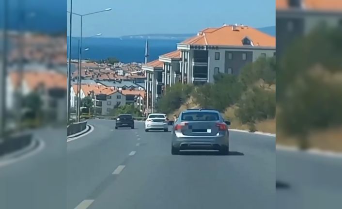 Bursa’nın Mudanya ilçesine doğru seyir halindeki otomobil sürücüsü bir ayağını camdan dışarı çıkarıp yolculuk yaptı. Direksiyon başındaki sürücü ne kendini ne de başkalarına düşünürken, adeta kazaya davetiye çıkardı. O anlar trafikteki başka sürücüler tarafından cep telefonu kamerasıyla kayda geçti.