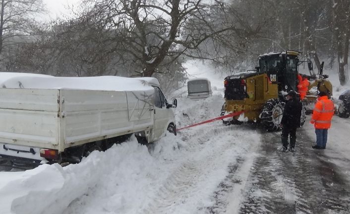 Kazdağları’nda cumartesi gününden bu yana devam eden kar yağışı yüksek kesimlerde ulaşımı zaman zaman aksatıyor. Görevliler bir yandan yolu açık tutmaya çabalarken, bir yandan da mahsur kalan vatandaşların yardımına koşuyor.