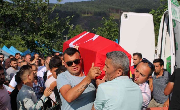 Düzce yaşanan selde kepçe ile suya gömülen ve 9 gün sonra cansız bedenine ulaşılan kepçe operatörü Okan Bayrak son yolculuğuna Türk bayrağına sarılı şekilde uğurlandı.