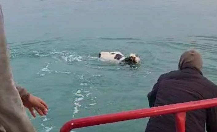 Van merkez Tuşba ilçesinde kasabın elinden kaçarak Van Gölü’ne giren dana, mahalle sakinleri tarafından kurtarıldı.
