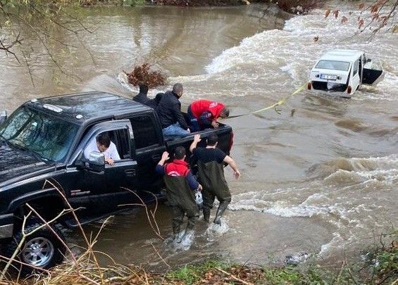 Edinilen bilgiye göre, M.T. idaresindeki 09 U 504 plakalı Renault marka araç yağmurun şiddetini artırmasıyla çayın ortasında kaldı. Araç içindekiler hemen itfaiye ekiplerinden yardım istedi. Büyükşehir Belediyesi Edremit İtfaiye Grup Amirliği ekipleri alarma geçerek olay yerine intikal etti. Araç içinde mahsur kalanları kurtardıktan sonra aracın ters dönmemesi için önlem aldı. Ardından ise bağlanan halatla aracı geri çekti. Kurtarılan araç sahibi ekiplere teşekkür etti. Olayla ilgili araştırma sürüyor.